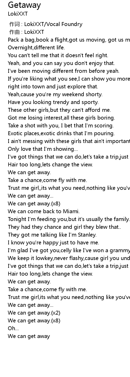 | [01:03.926] | We can get away. x8 |