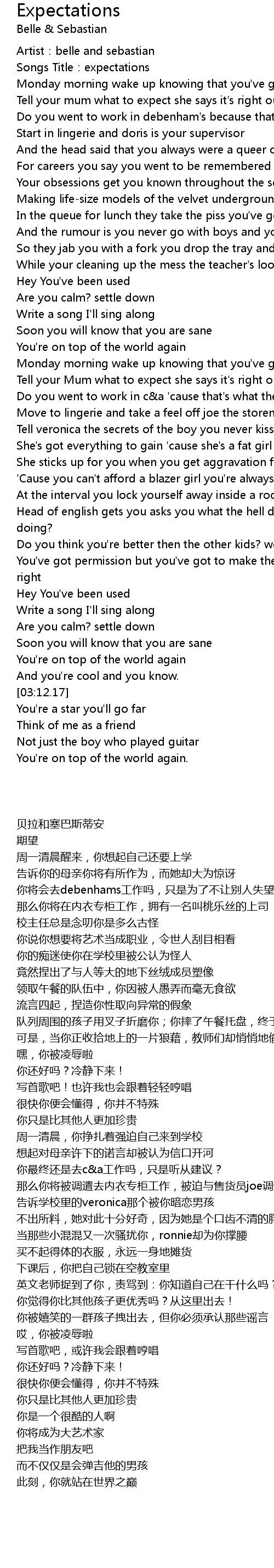 | [00:08.10] | Songs Title: expectations |