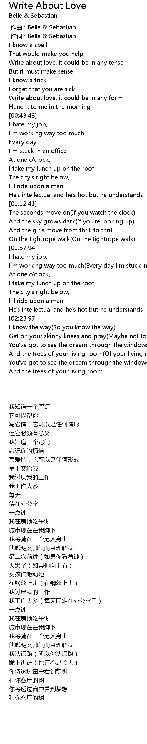 | [00:01.00] | 作词 : Belle & Sebastian |