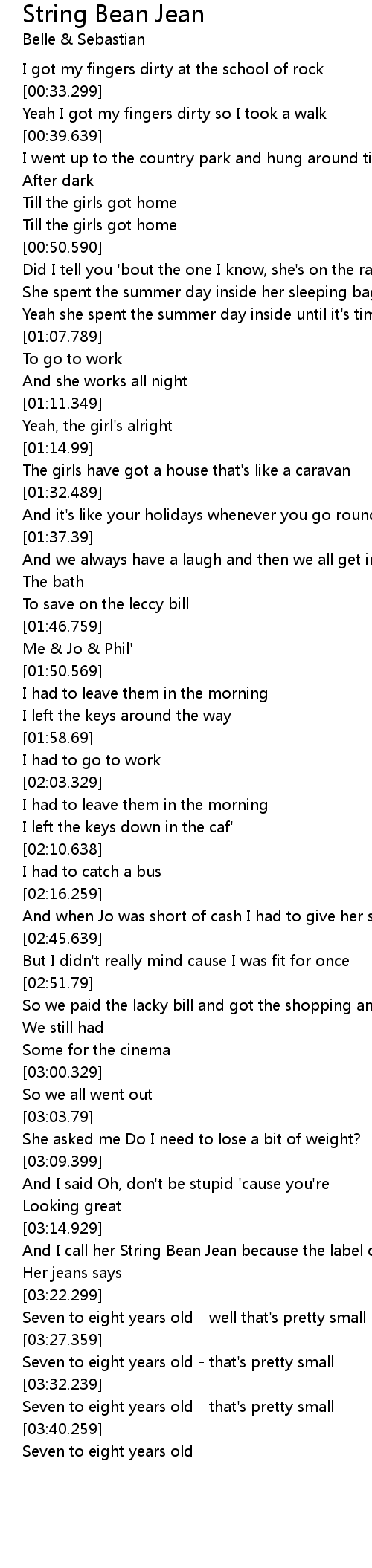 | [03:21.49] | Her jeans says |