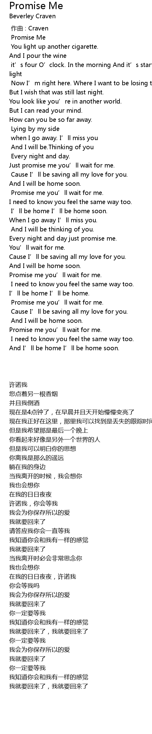 | [02:53.90] | Promise me you' ll wait for me. |