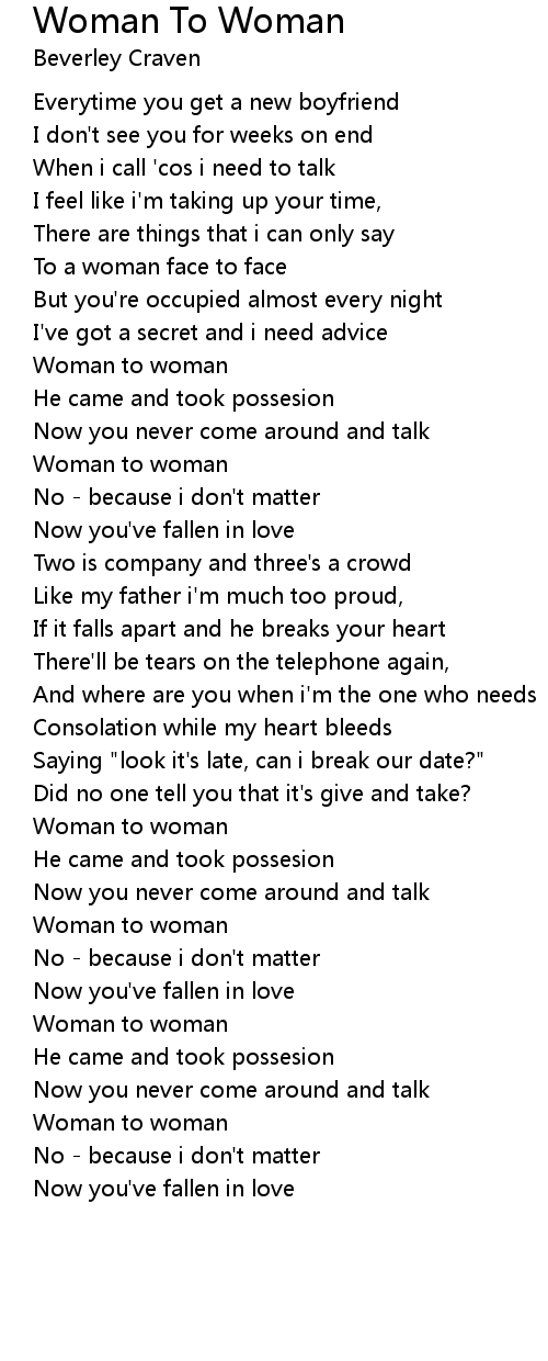 Woman To Woman 歌词