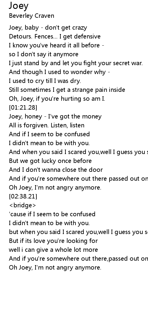 [00:08.80] Joey, baby - don't get crazy