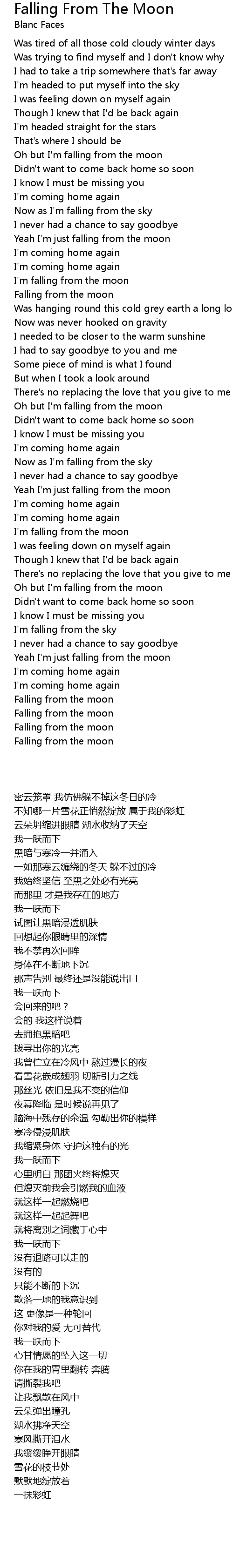 Oh but I'm falling from the moon |