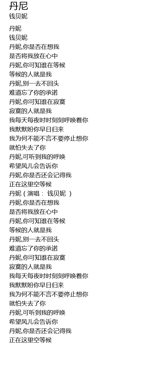 | [00:22.00] | 丹妮,你可知谁在等候 |
