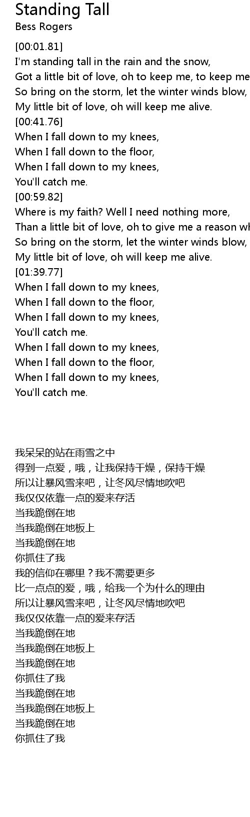 I'm standing tall in the rain and the snow, |
