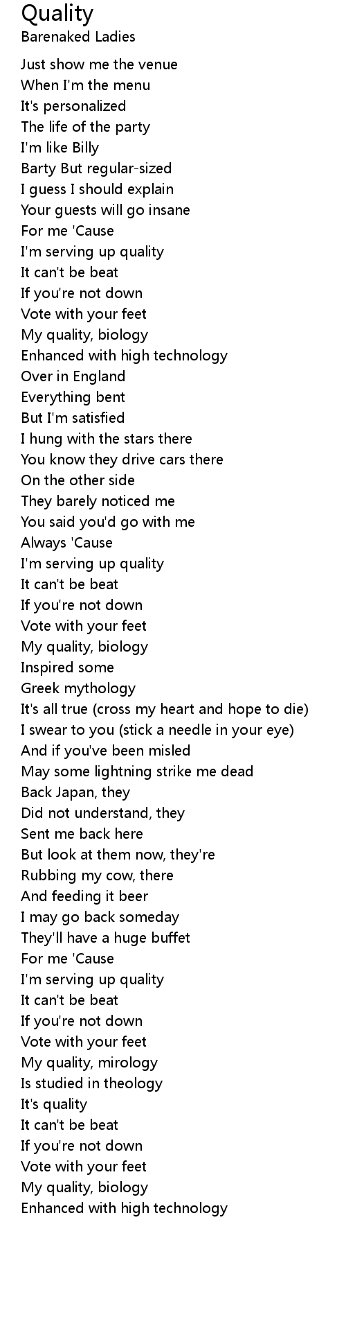 Quality 歌词