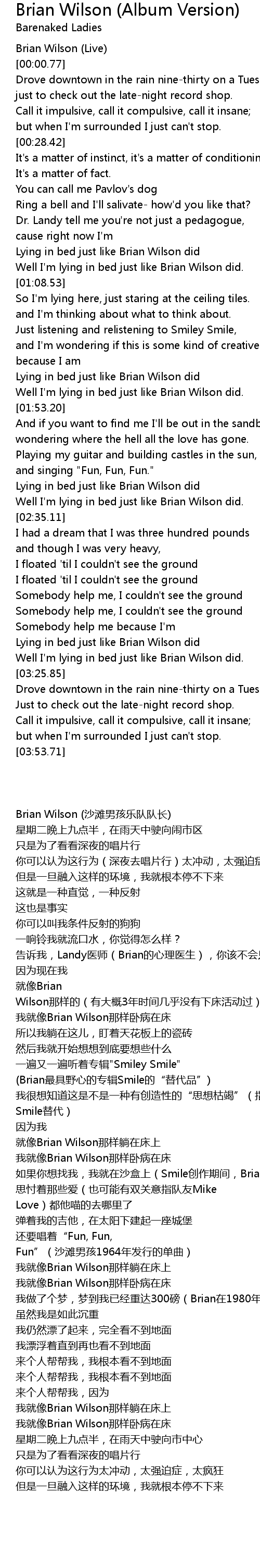 Well I'm lying in bed just like Brian Wilson did. |