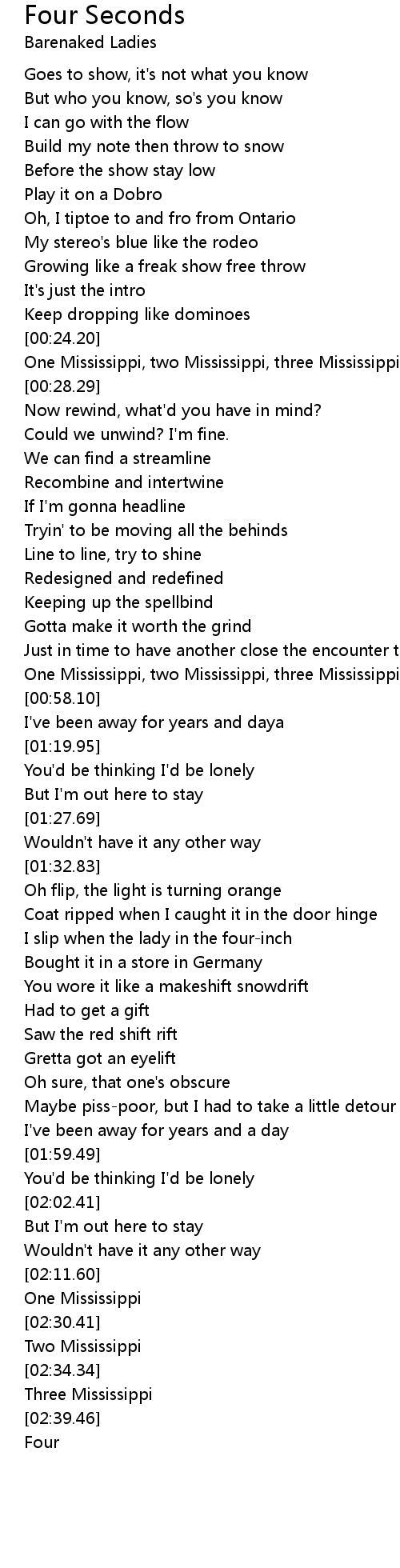 One Mississippi, two Mississippi, three Mississippi, four |