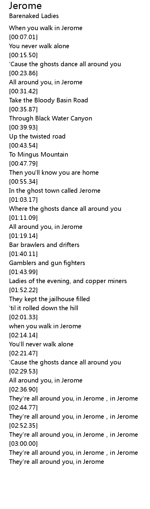 | [03:00.87] | They're all around you, in Jerome,in Jerome |