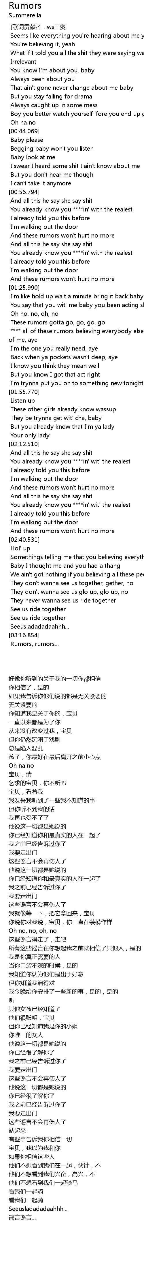 | [01:43.304] | **** all of these rumors believing everybody else before you think of me, aye |