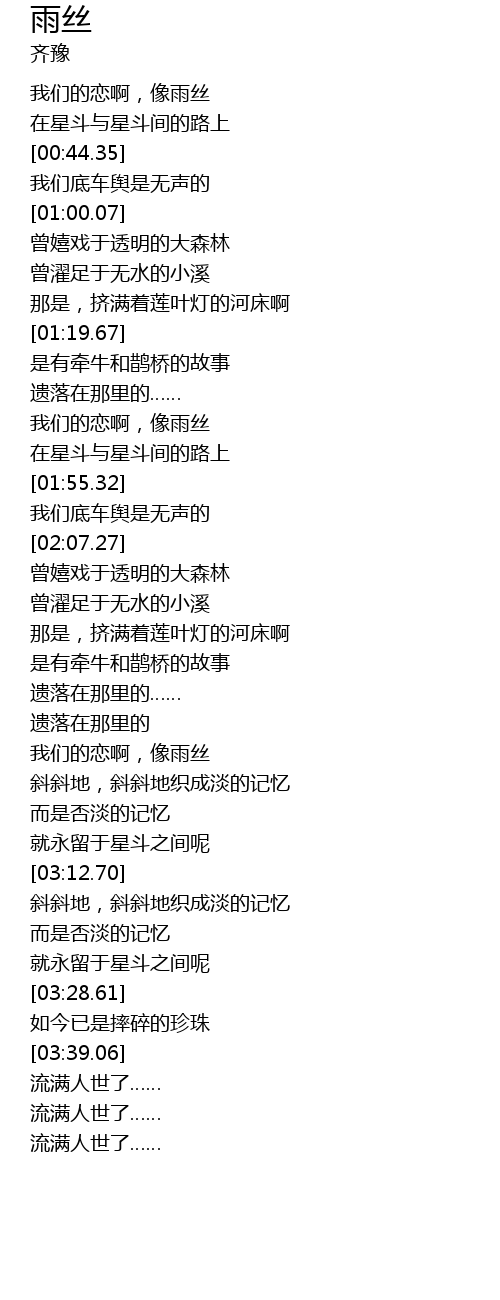 | [01:37.95] | 我们的恋啊,像雨丝 |