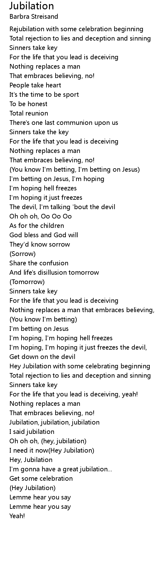 I'm gonna have a great jubilation... |