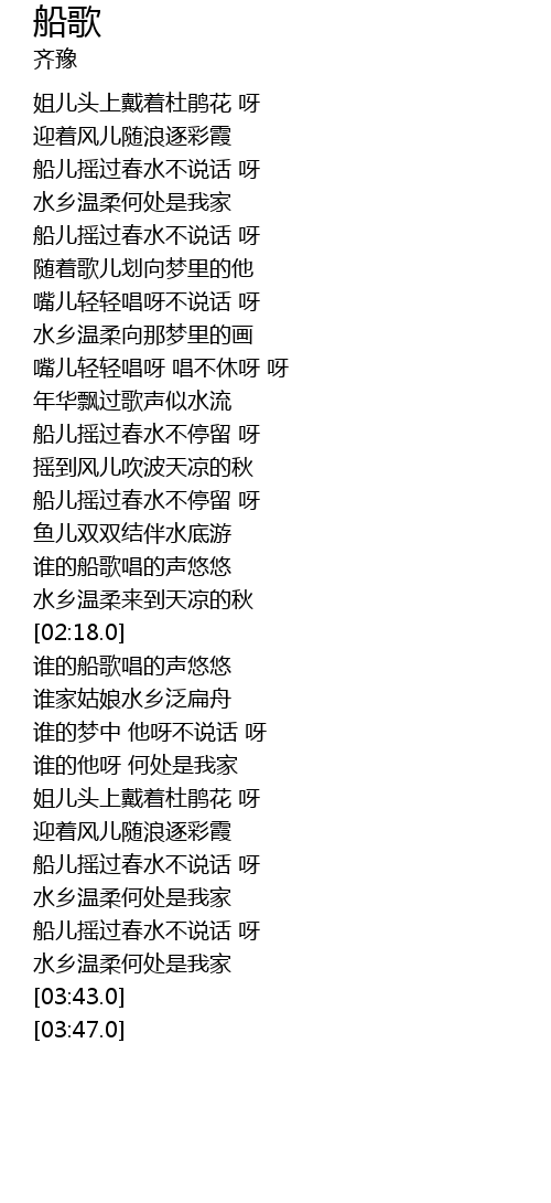 | [02:39.0] | 谁的船歌唱的声悠悠 |