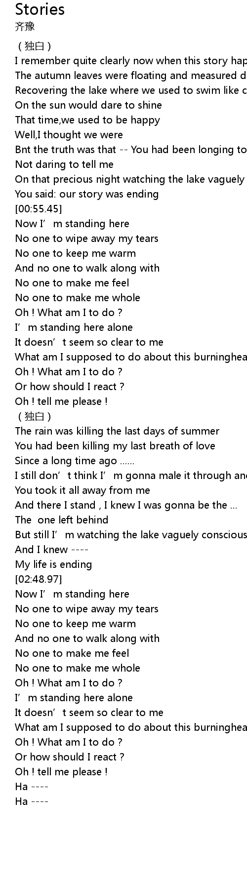 | [00:32.31] | Bnt the truth was that -- You had been longing to leave me |