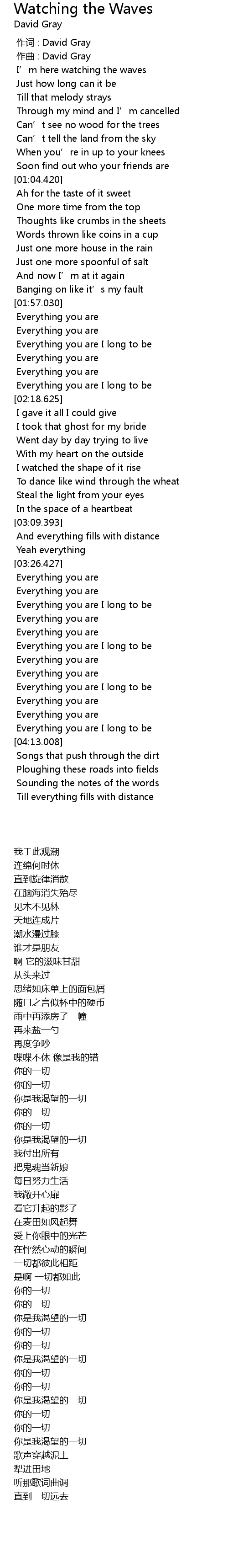 | [00:01.000] | 作曲 : David Gray |