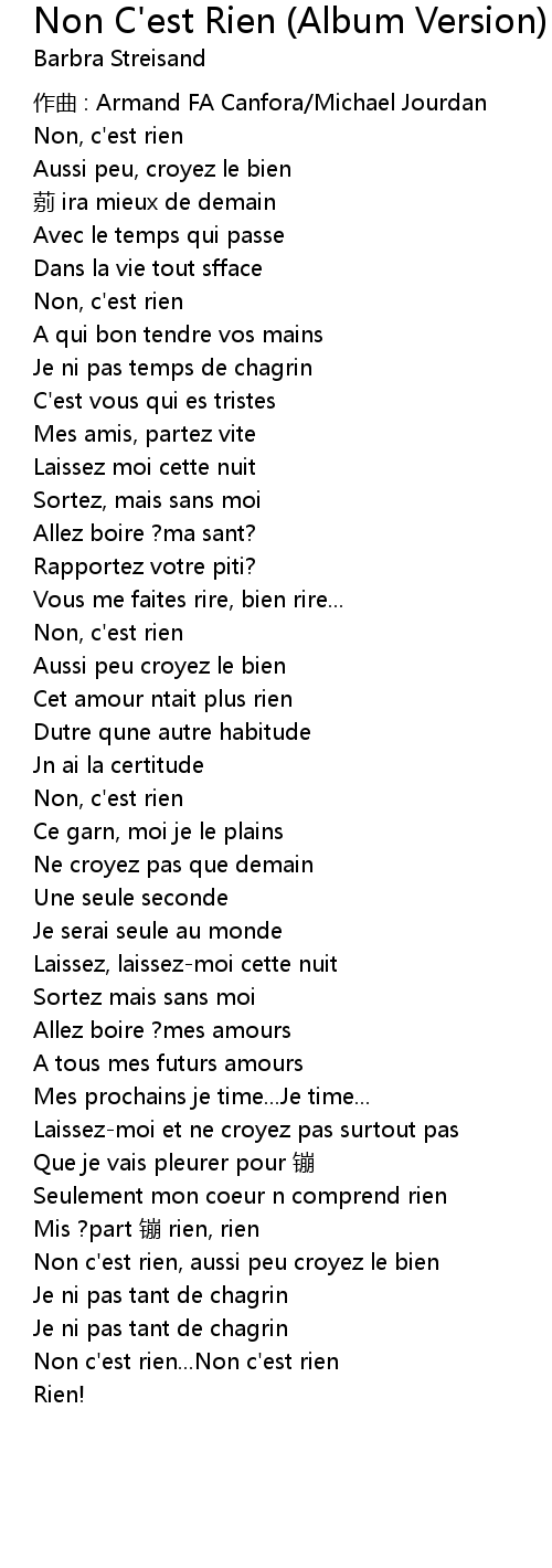 | 歌曲 | Non C'est Rien (Album Version) |