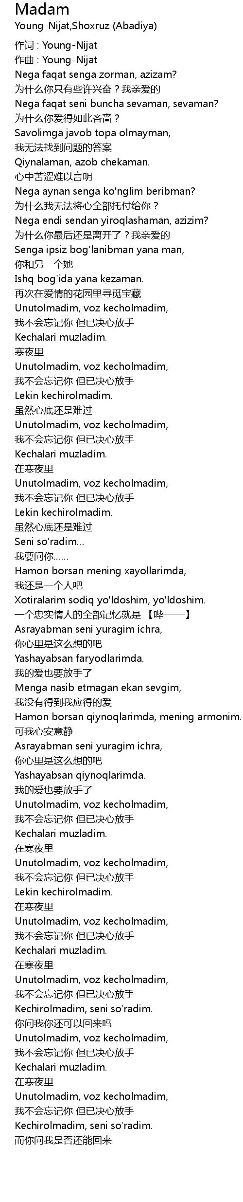 | Nega faqat seni buncha sevaman, sevaman? | |