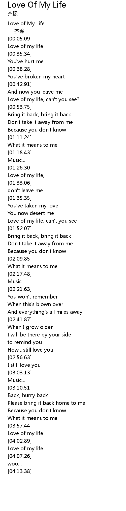 | [04:03.57] | Love of my life |