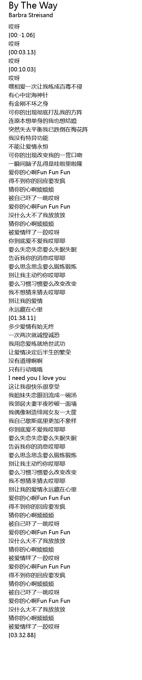 | [03:19.62] | 爱你的心啊Fun Fun Fun |