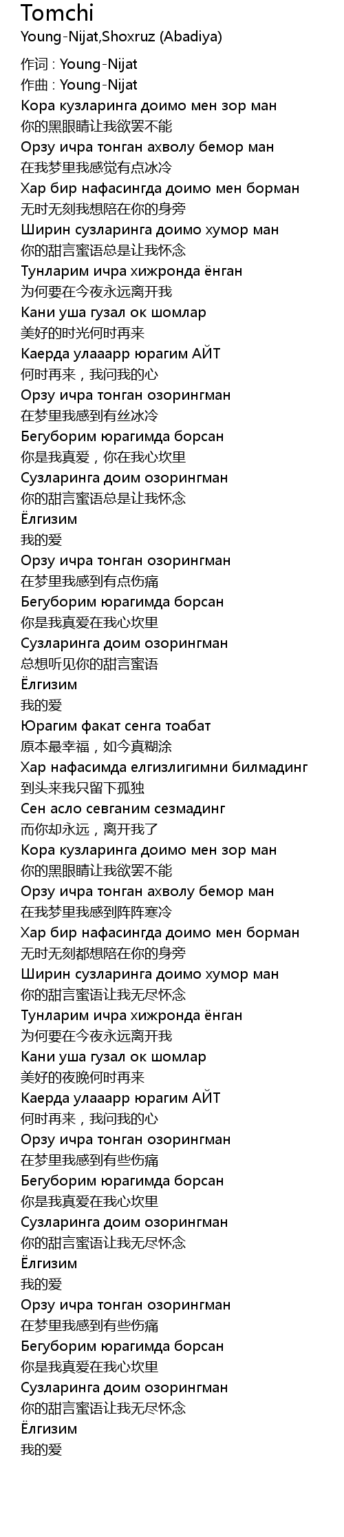 | 作词 : Young-Nijat | |