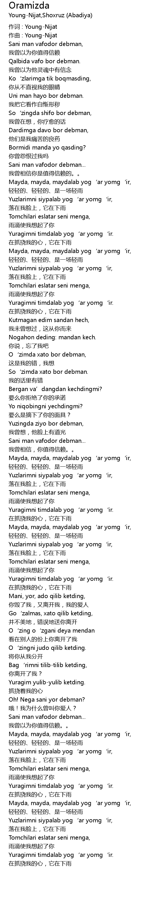 | 作词 : Young-Nijat | |