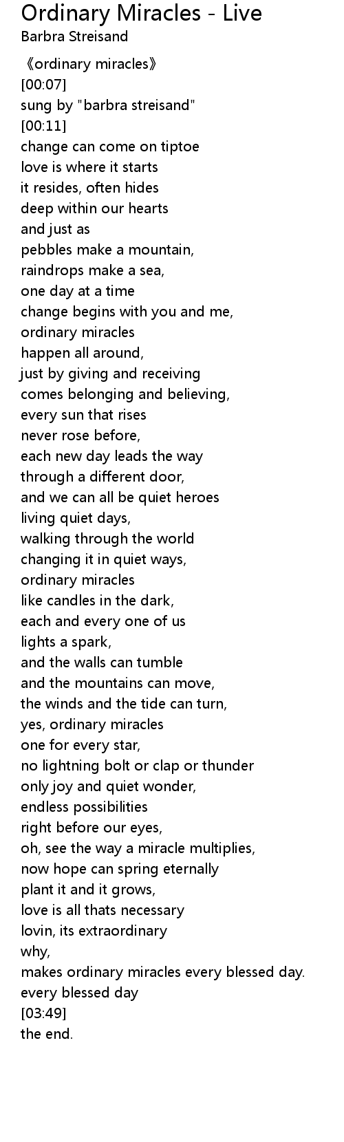 | [00:47] | ordinary miracles |