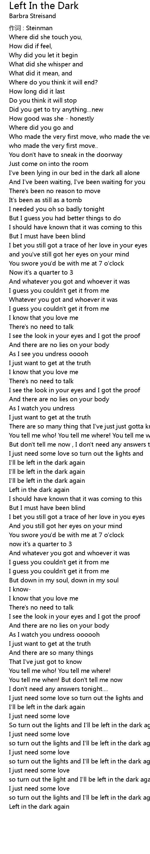 | so turn out the lights and I' ll be left in the dark again...... | |