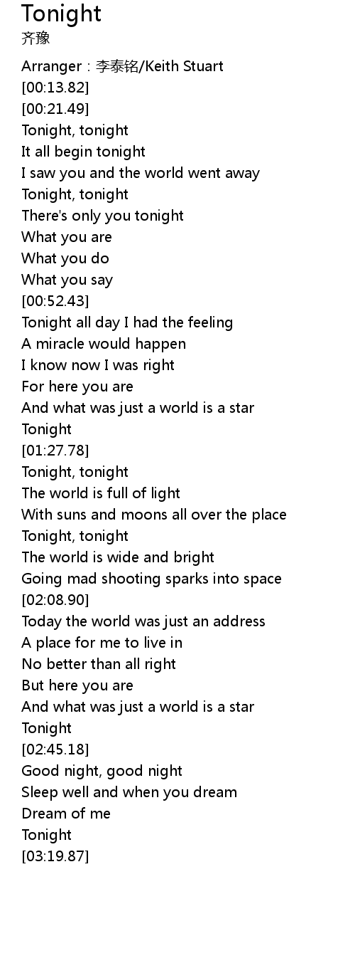 | [00:21.70] | Tonight, tonight |