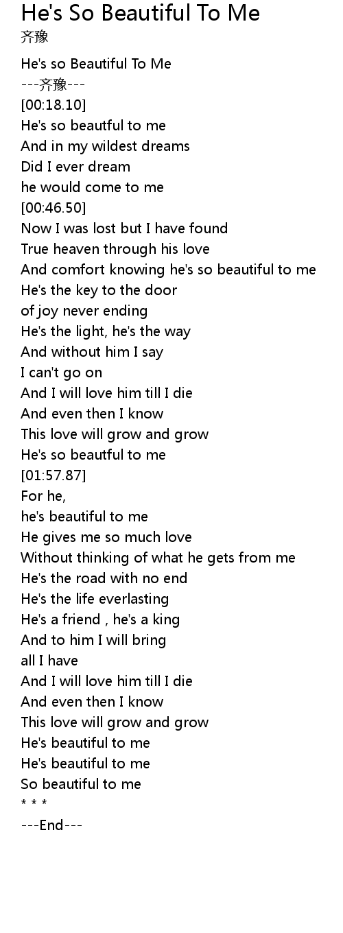 | [00:01.39] | He's so Beautiful To Me |