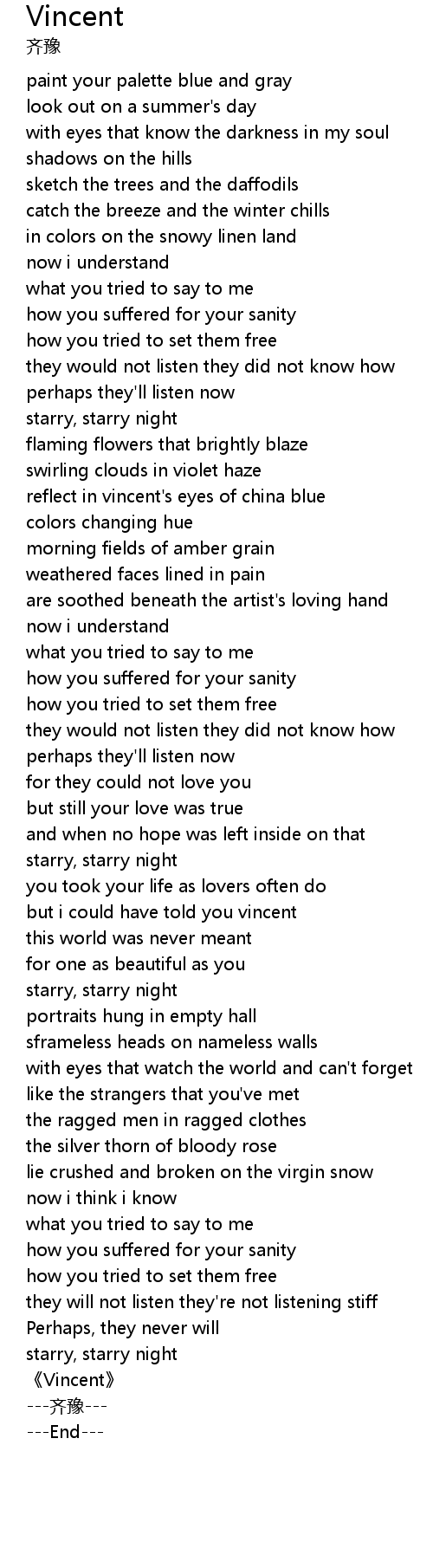 | [01:23.20] | reflect in vincent's eyes of china blue |