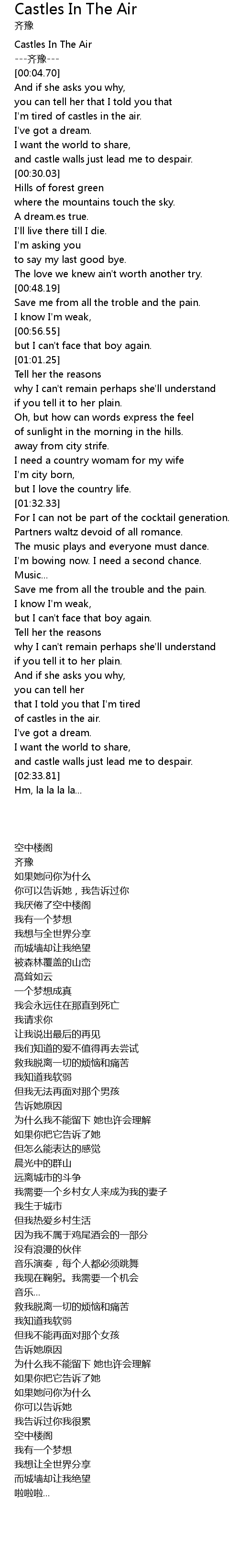 | [00:19.30] | 我厌倦了空中楼阁 |