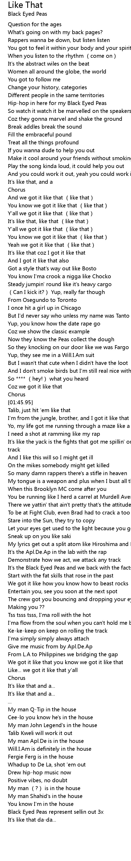 | [02:37.98] | It's the Black Eyed Peas and we back with the facts |