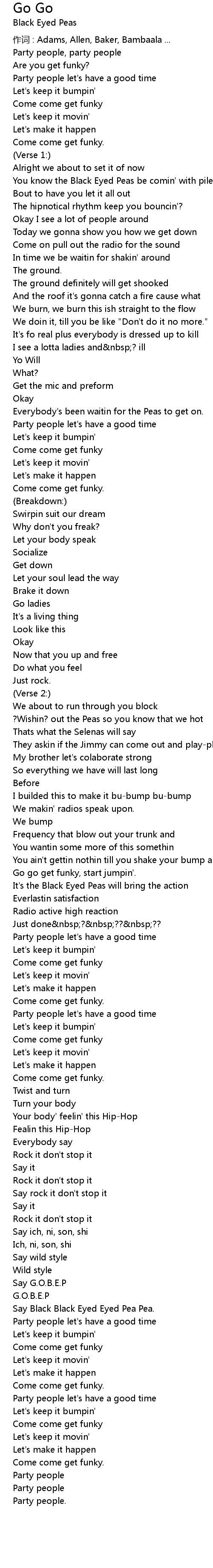 | 作词 : Adams, Allen, Baker, Bambaala ... | |