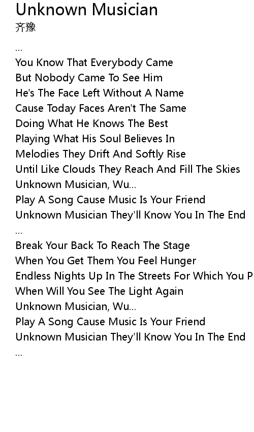 | [02:51.741] | Unknown Musician, Wu... |