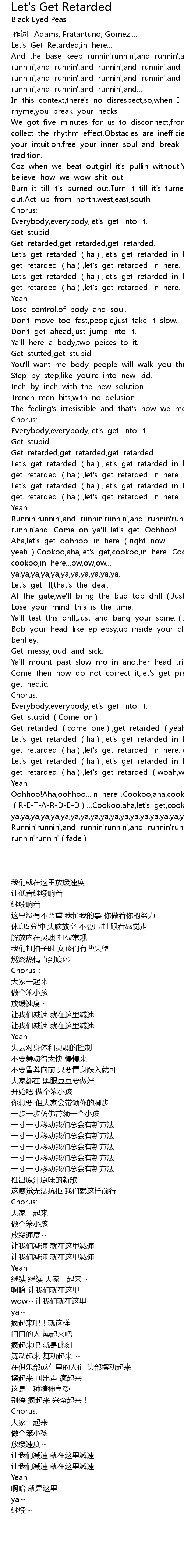 | [00:59.822] | Let's get retarded (ha),let's get retarded in here.Let's get retarded (ha),let's get retarded in here. |