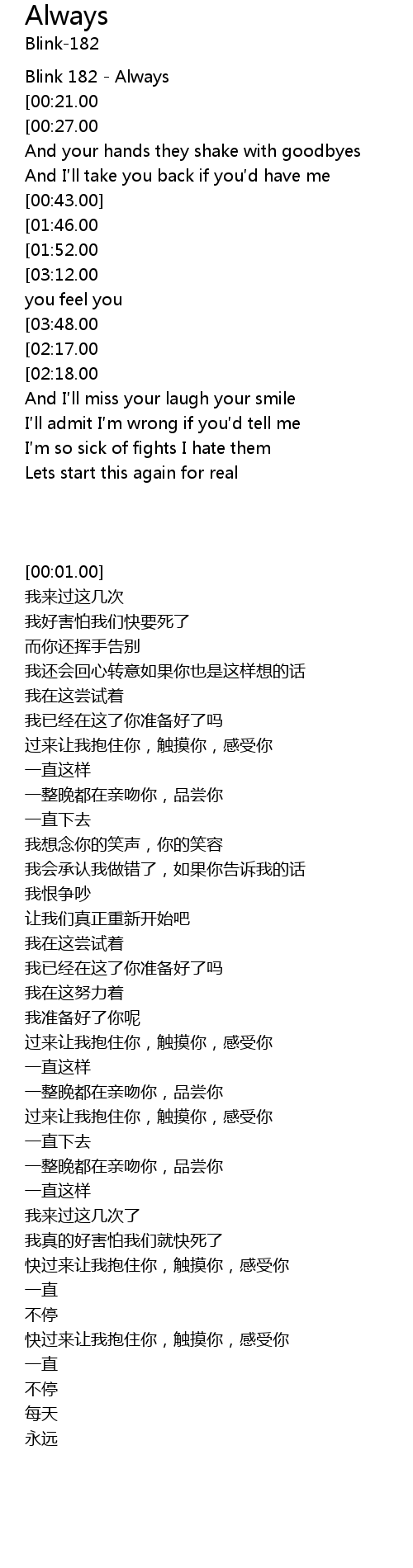 | [04:00.00][03:48.00][03:36.00][03:30.00][03:23.00][03:17.00][02:34.00][02:27.00][02:15.00][01:09.00][01:03.00] | Always |