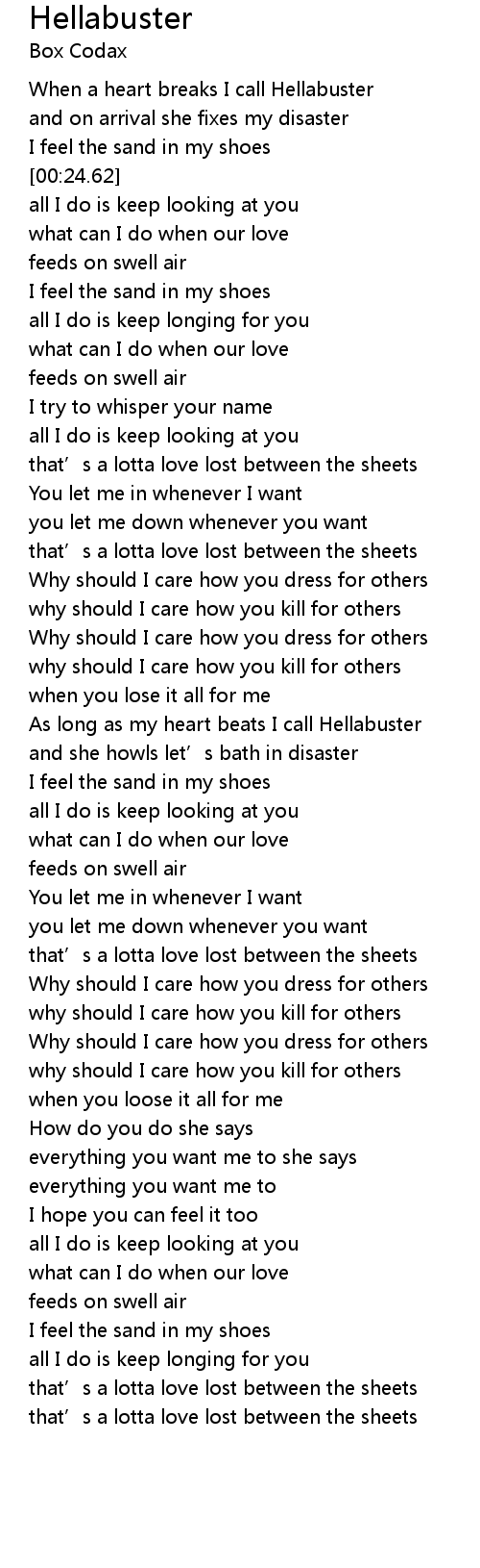 | [00:18.44] | When a heart breaks I call Hellabuster |