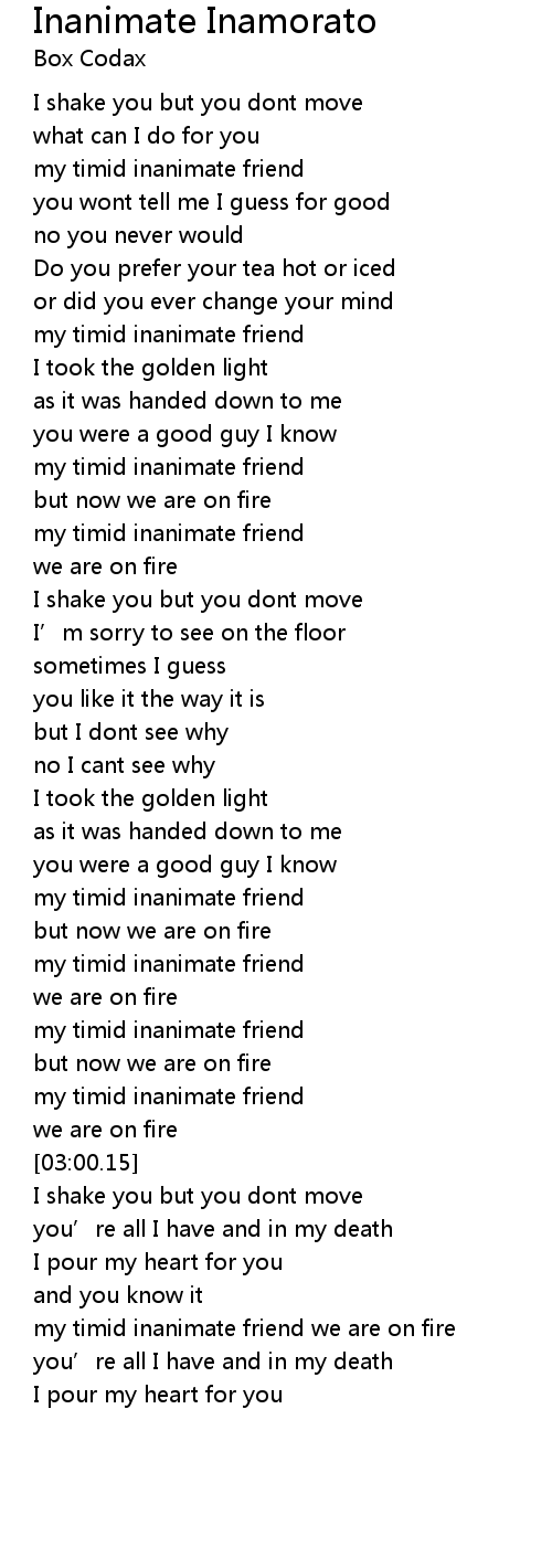 | [03:22.72] | my timid inanimate friend we are on fire |