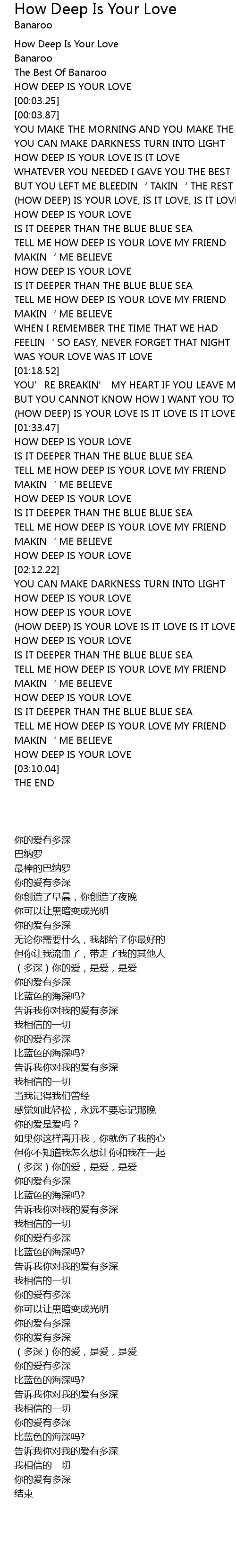 | [02:58.63] | TELL ME HOW DEEP IS YOUR LOVE MY FRIEND |