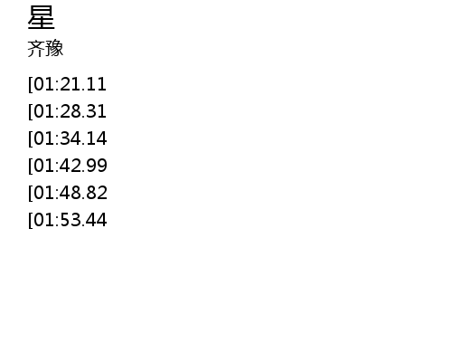 | [00:55.34][01:48.82][03:07.21] | bu zhi bu jue bu zhi bu jue |