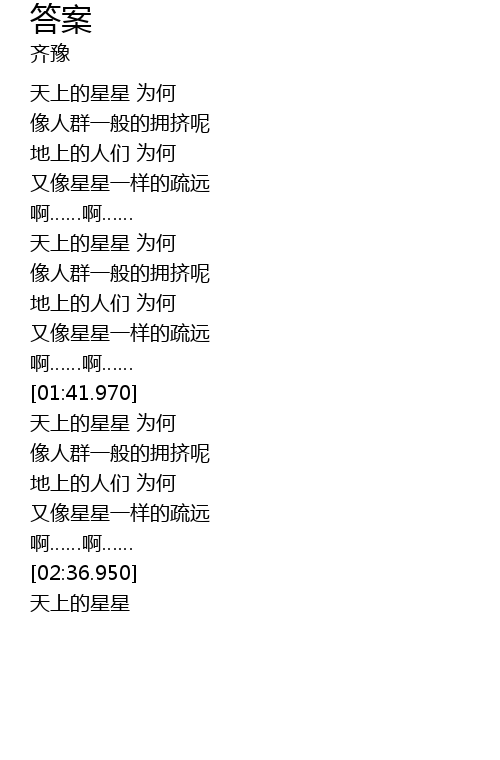 | [01:57.289] | tiān shàng de xīng xīng wèi hé |