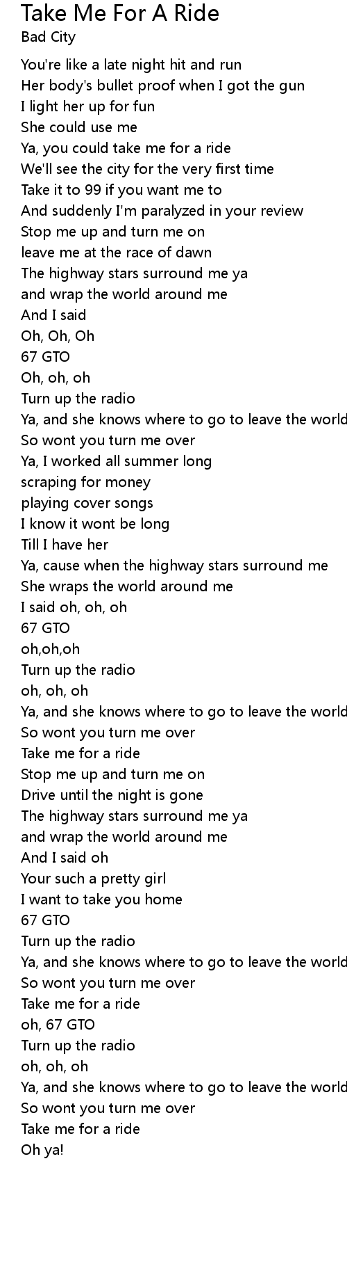 Take Me For A Ride 歌词