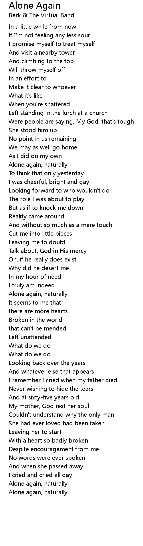 Alone again, naturally |