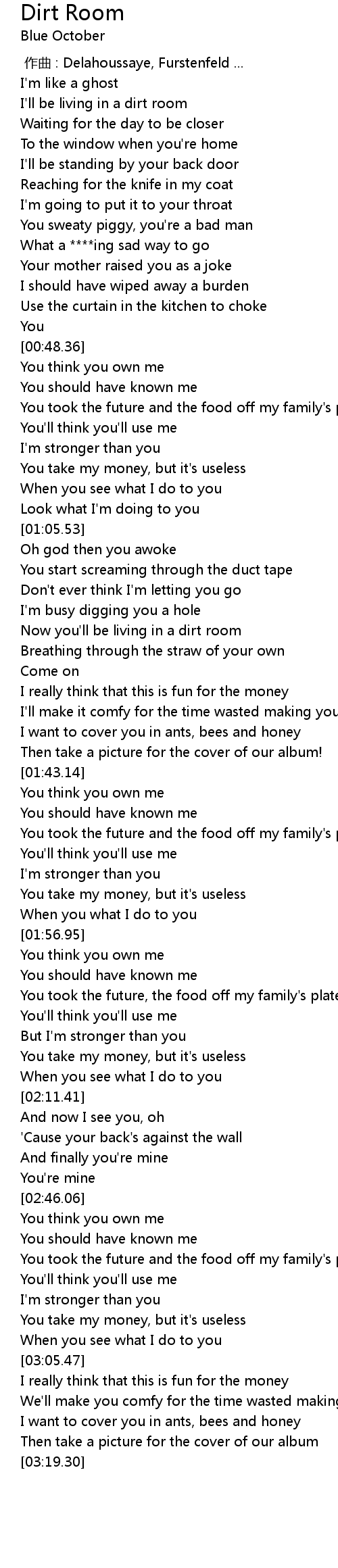 | [01:23.42] | Now you'll be living in a dirt room |