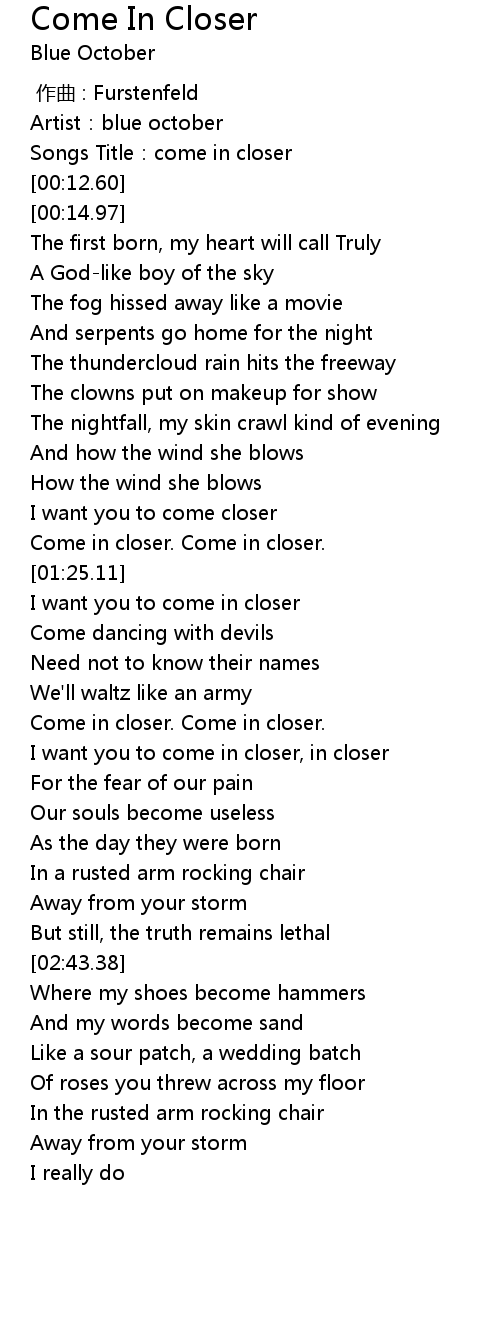 | [01:06.45] | The nightfall, my skin crawl kind of evening |