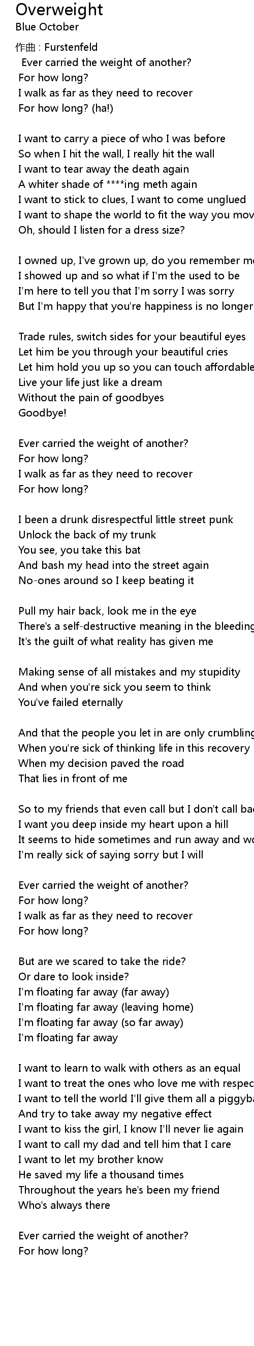 | 歌曲 | Overweight |