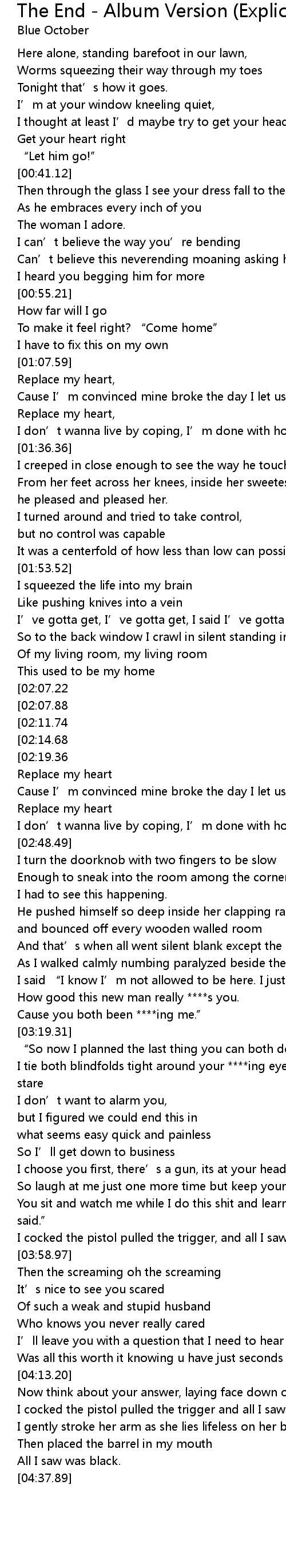 | [03:05.68] | And that’s when all went silent blank except the color red |
