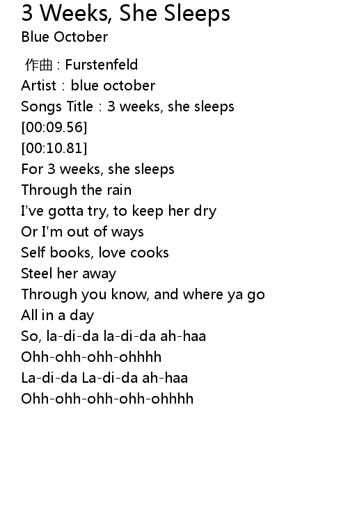 | [00:06.31] | Songs Title:3 weeks, she sleeps |