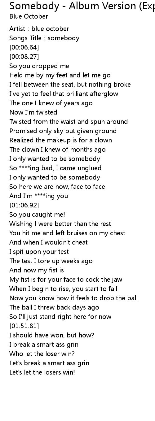 | 歌曲 | Somebody - Album Version (Explicit) |